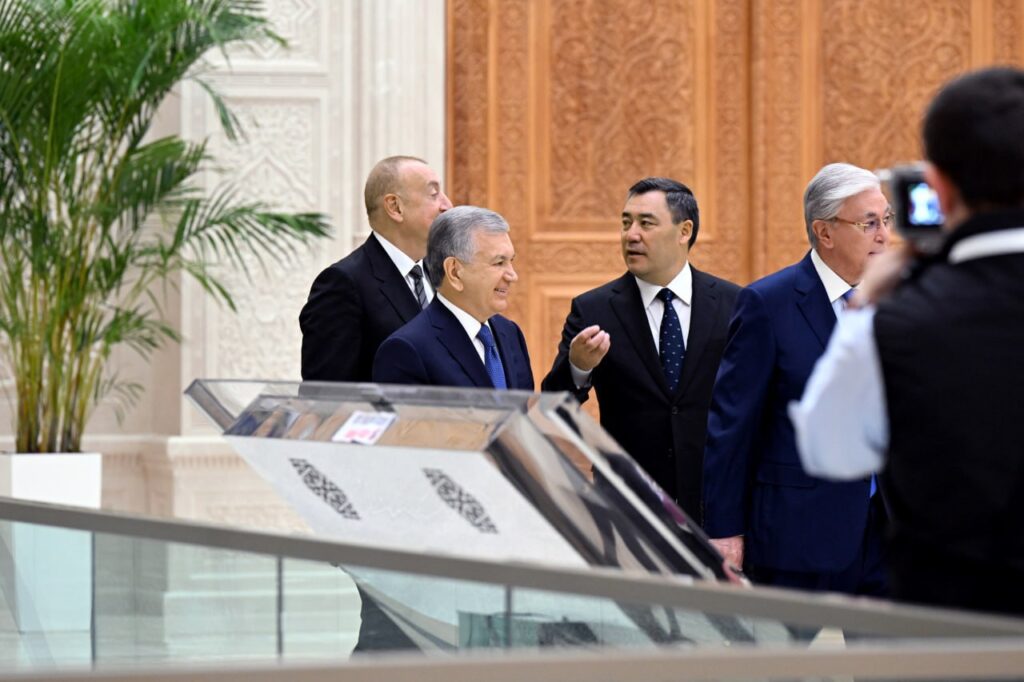 President of Azerbaijan Ilham Aliyev, President of Tajikistan Emomali Rahmon, President of Kyrgyzstan Sadyr Japarov, and President of Kazakhstan Kassym-Jomart Tokayev, accompanied by President Shavkat Mirziyoyev, visited the Quran Hall, where the invaluable spiritual treasure of the Muslim world — the Mushaf of Uthman — is preserved. As one of the oldest handwritten copies of the Quran, this rare manuscript holds great historical and cultural significance, symbolizing the deep spiritual ties that have shaped the civilizational identity of the peoples of our region.
