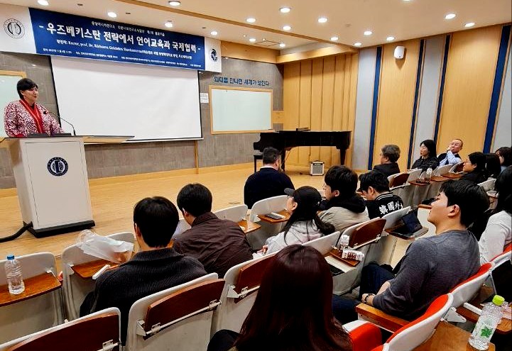 During her official visit to the Republic of Korea, Rector of Tashkent State University of Oriental Studies Prof. G. Rixsiyeva delivered a lecture for students and faculty members of the Central Asian Studies Institute at HUFS on the topic “Language Education and International Cooperation in Uzbekistan’s Strategy”.