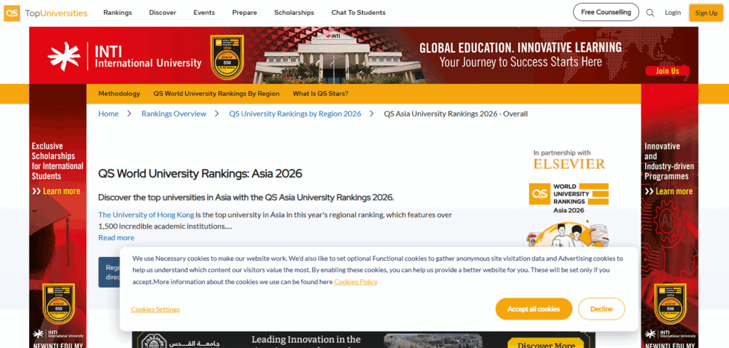 Для справки: в данном рейтинге были оценены более 1500 университетов из 25 стран и территорий Азии, при этом 557 из них включены в список впервые. Оценка проводилась по таким критериям, как научный потенциал, международная репутация, трудоустройство выпускников, качество образования и активность в международном сотрудничестве.