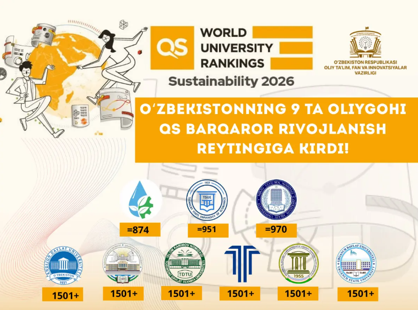 ОЧЕРЕДНЫЕ ДОСТИЖЕНИЯ! 9 ВУЗОВ УЗБЕКИСТАНА ВОШЛИ В РЕЙТИНГ QS ПО УСТОЙЧИВОМУ РАЗВИТИЮ!