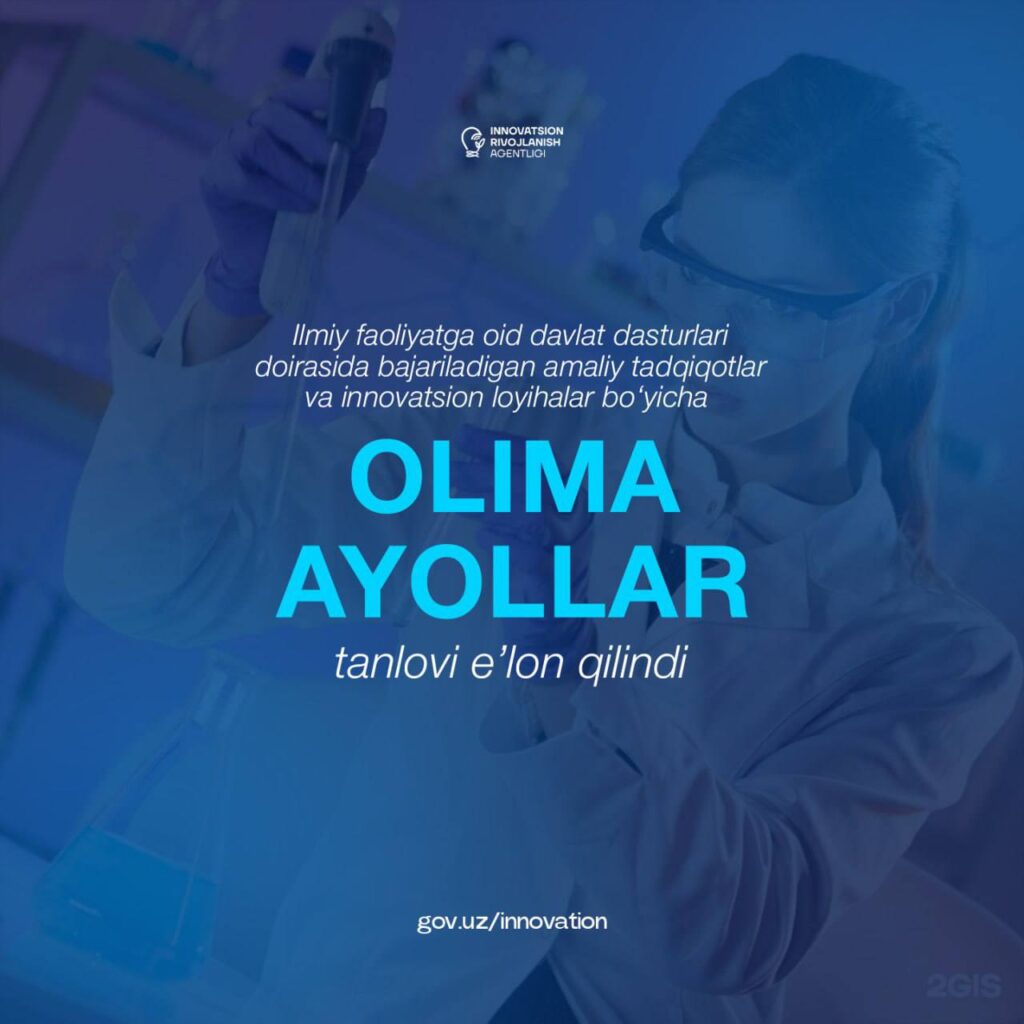 Ilmiy faoliyatga oid davlat dasturlari doirasida bajariladigan amaliy tadqiqot va innovatsion loyihalarni qabul qilish uchun “Olima ayollar” tanlovi eʼlon qilinmoqda.