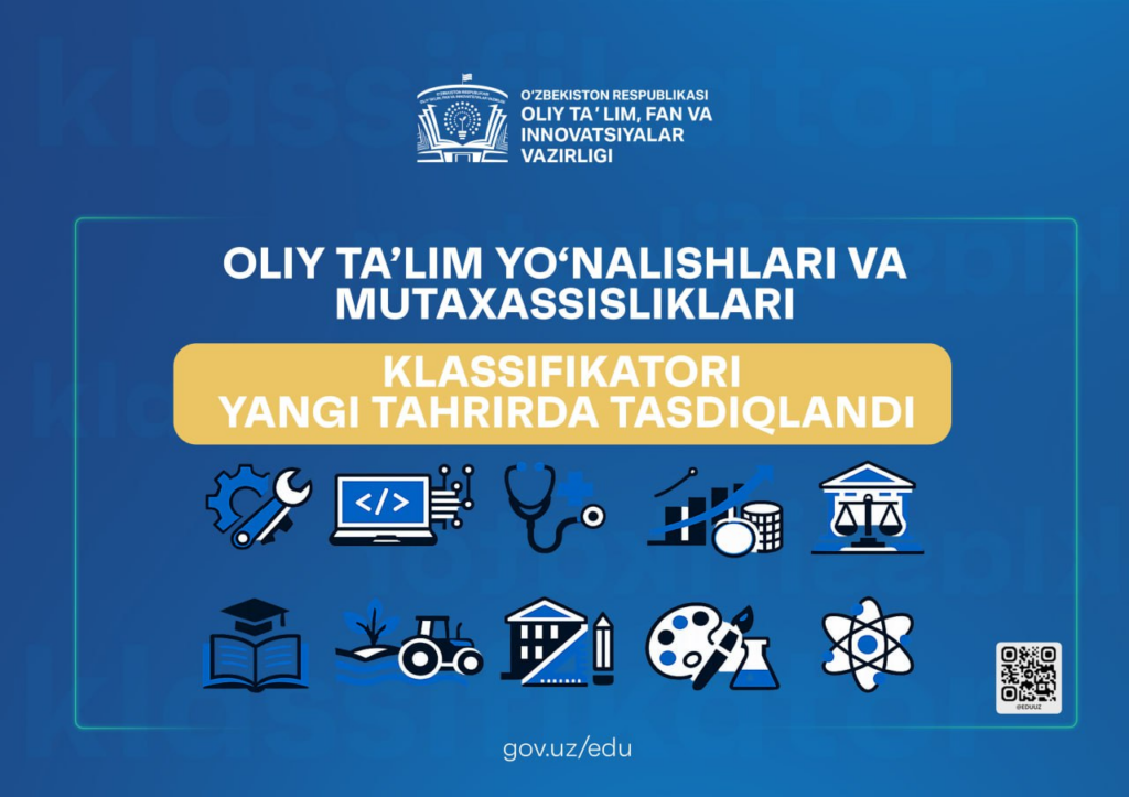 OLIY TAʼLIM YOʻNALISHLARI VA MUTAXASSISLIKLARI KLASSIFIKATORI YANGI TAHRIRDA TASDIQLANDI