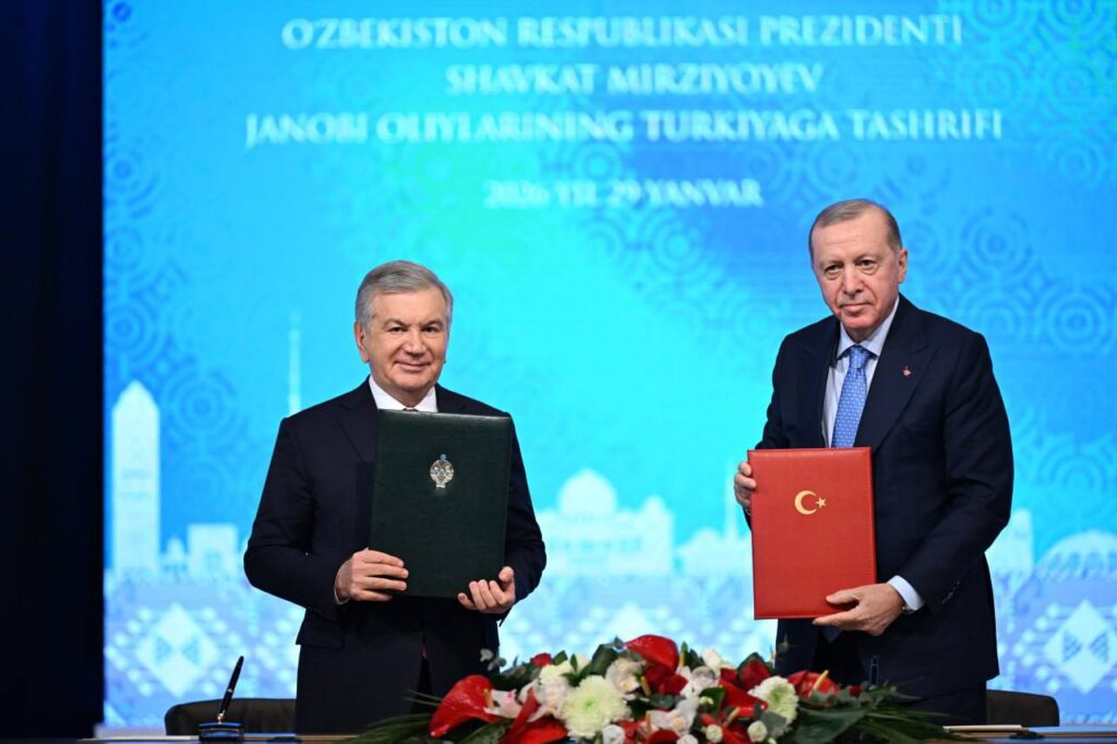 30.01.2026O‘zbekiston Respublikasi Prezidenti Shavkat Mirziyoyev va Turkiya Respublikasi Prezidenti Rejep Tayyip Erdog‘an raisligida Oliy darajadagi Strategik hamkorlik kengashining to‘rtinchi yig‘ilishi bo‘lib o‘tdi.