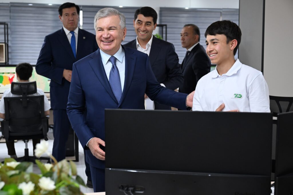 Prezident Shavkat Mirziyoyev Quva tumanidagi 1-sonli texnikumda yoshlarni zamonaviy kasblar va xorijiy tillarga oʻqitish ishlari bilan tanishdi.