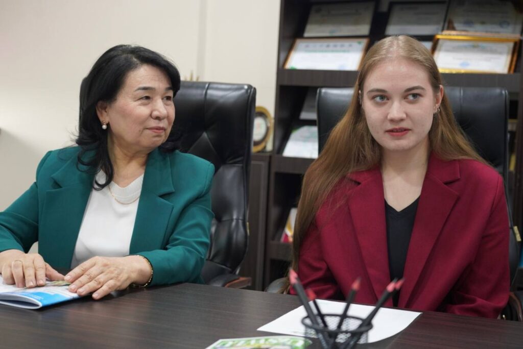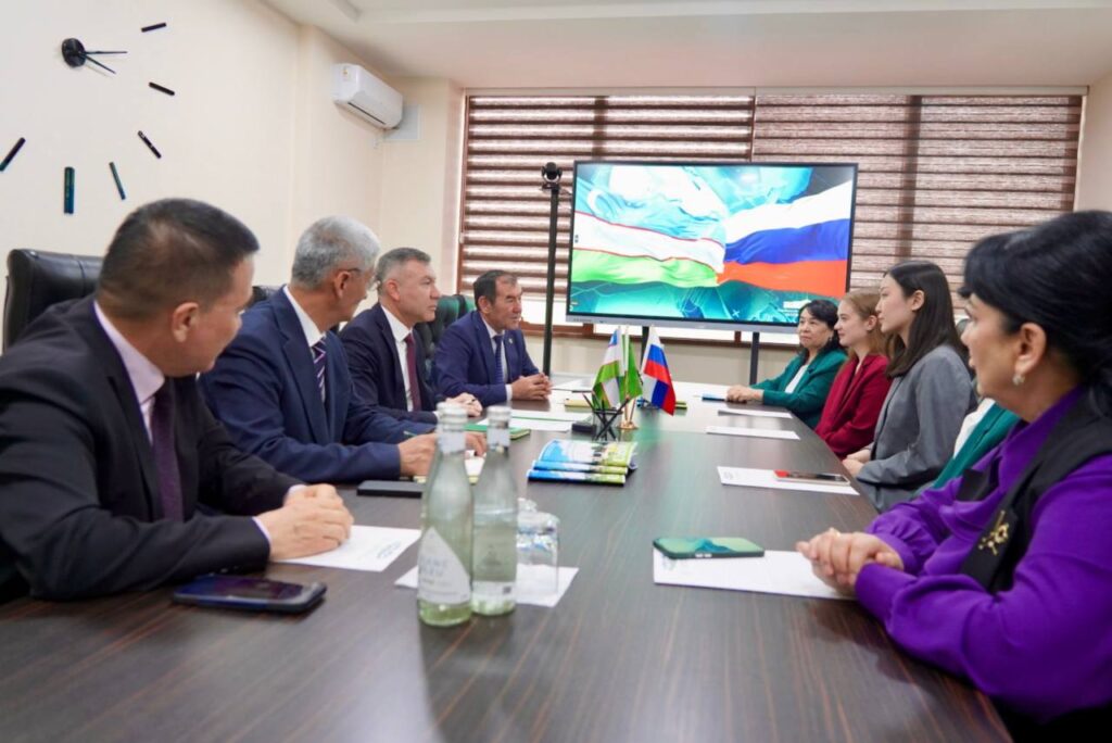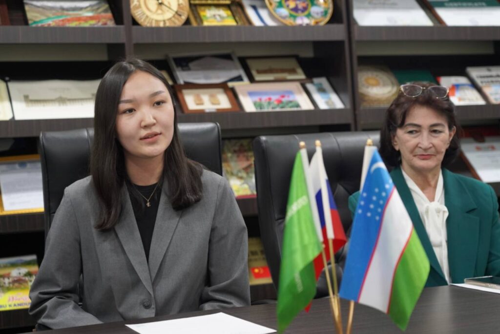 Muloqot jarayonida mehmon talabalar: Kolotova Valeriya Dmitriyevna va Oorjak Yevgeniya Fazilovna hamda mas’ul xodimlar ishtirokida akademik almashinuv dasturi doirasida amalga oshirilayotgan ishlar muhokama qilindi.